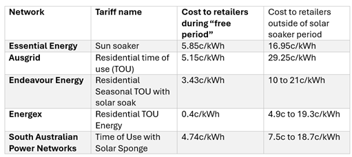 So, what does that all add up to? In effect, for a household to benefit from the Solar Sharer, they have to be willing to decide whether to opt into the new DMO as opposed to the market offers already available, and make an assessment as to whether or not they are able to shift enough of their load into the middle of the day to offset the higher costs outside of the period. While the AER will have a role to set the prices, it is important to remember that just because a free period is announced, it does not mean costs evaporate. Wholesale and network costs will still be incurred by retailers during the three-hour “free” window. The below table shows the cheapest network tariff currently available during the middle of the day, and its cost to retailers in 2025/26.