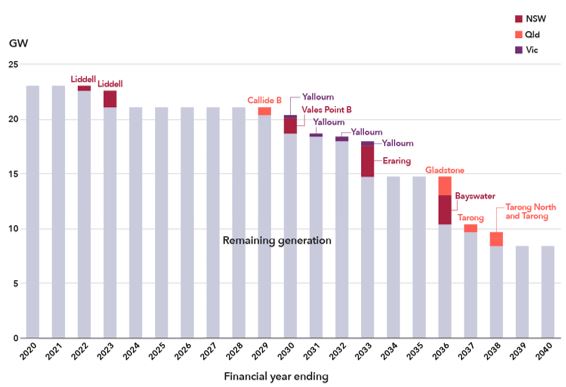 It is accepted that the NEM’s fleet of coal-fired generation will reach the end of its technical life in the next 40 years, and the Australian Energy Market Operator (AEMO) has published its expectation of the retirement profile in the Draft Integrated System Plan (ISP).[iii]