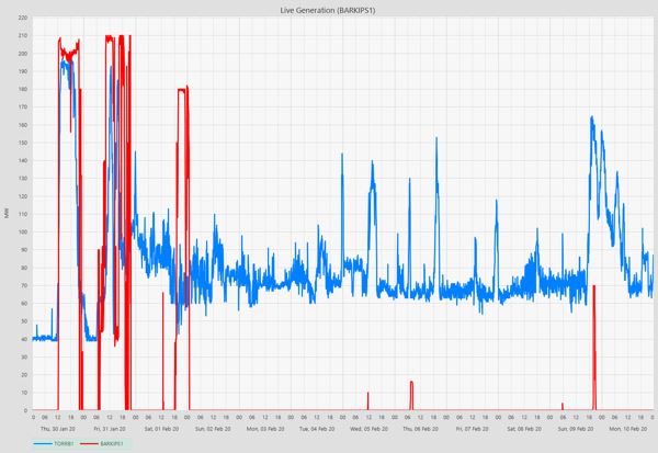 Having different technologies, the plants have different running patterns, for example during the period 30 January-10 February this year, Torrens B1 ran steadily, flexing up and down as needed, whereas Barker Inlet switched on and off as required, as shown in Figure 1 below.