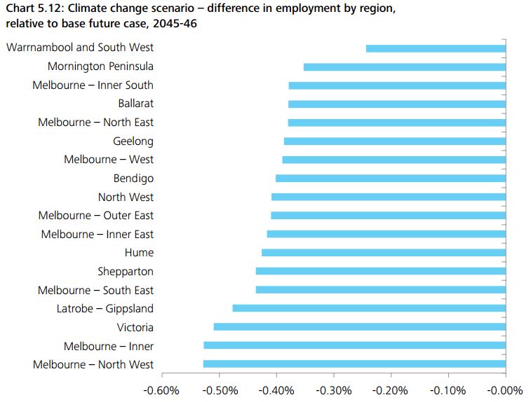 Figure 3: employment impacts by region in Victoria under a carbon price scenario, relative to base case in 2045-46