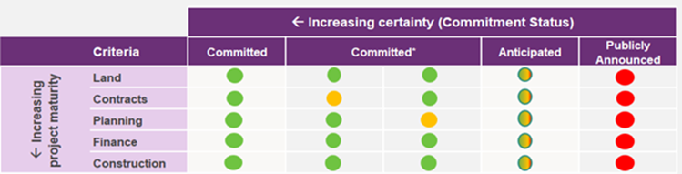 Anticipated projects are those that are sufficiently progressed towards meeting at least three of the five commitment criteria (see figure 1 below) used by AEMO, so they still have some way to go before becoming a committed project.